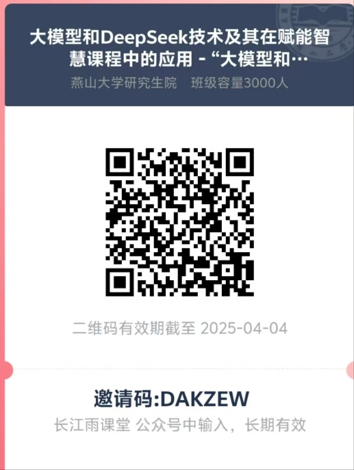 为推动前沿技术在研究生教育教学中的融合应用,提升课程建设的智慧化水平,助力教师紧跟科技发展趋势,优化教学方法,现组织我院研究生导师参加“大模型和DeepSeek技术及其在赋能智慧课程中的应用”线上培训。具体安排如下:
