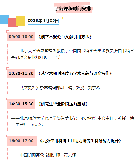 2023年4月19日至5月19日期间在线报名后,即可按时观看课程直播,完成规定7学时可获取由中国知网发放的结课证书。