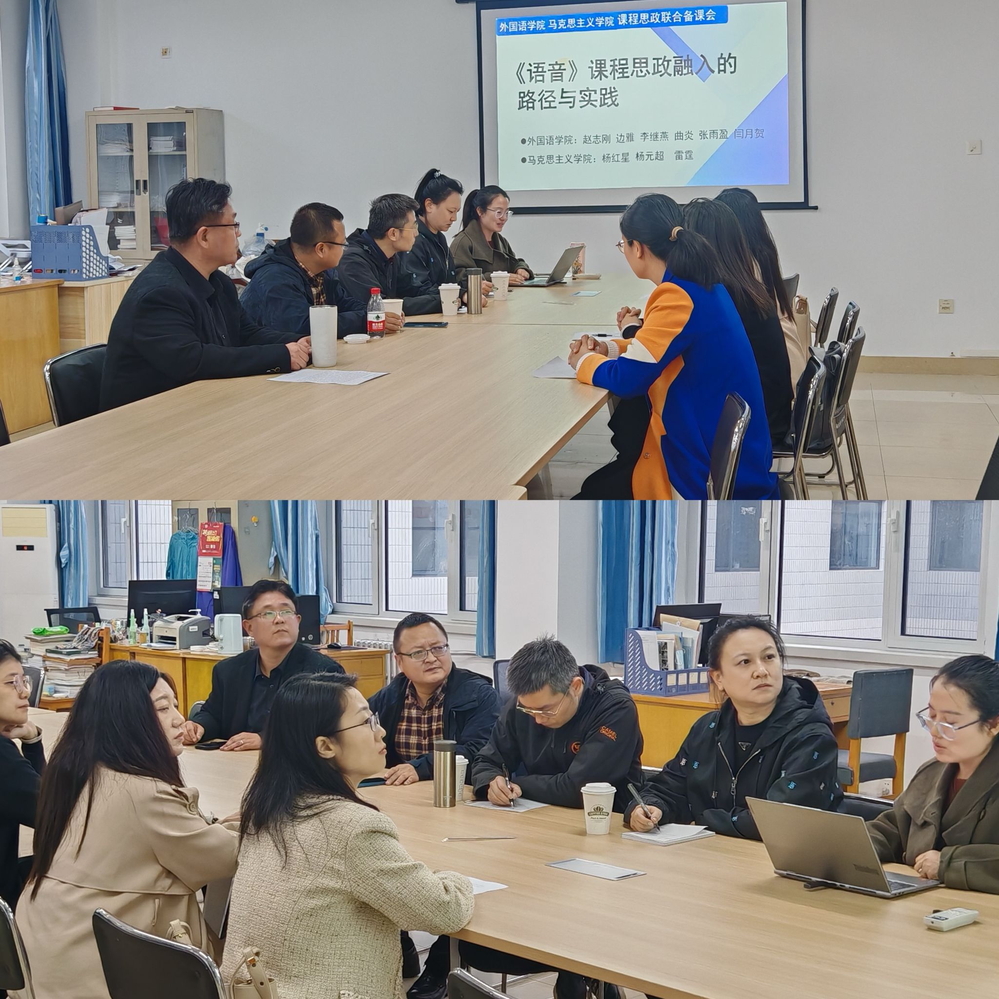 2024年10月31日下午,校级课程思政示范课程《语音》教学团队在人文馆318与马克思主义学院思政教师组织了课程思政与思政课程“双向融合”的联合备课活动。马克思主义学院杨红星、杨元超和雷霆三位老师受邀出席,语音教学团队成员参加了研讨。本次活动由边雅老师主持。