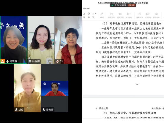 11月4日晚8:00,研究生英语系在腾讯会议上成功召开了关于教材选用及教学理念的研讨会,会议由副主任何晓静老师主持,担任中外合作办学课程的老师们参加了会议。