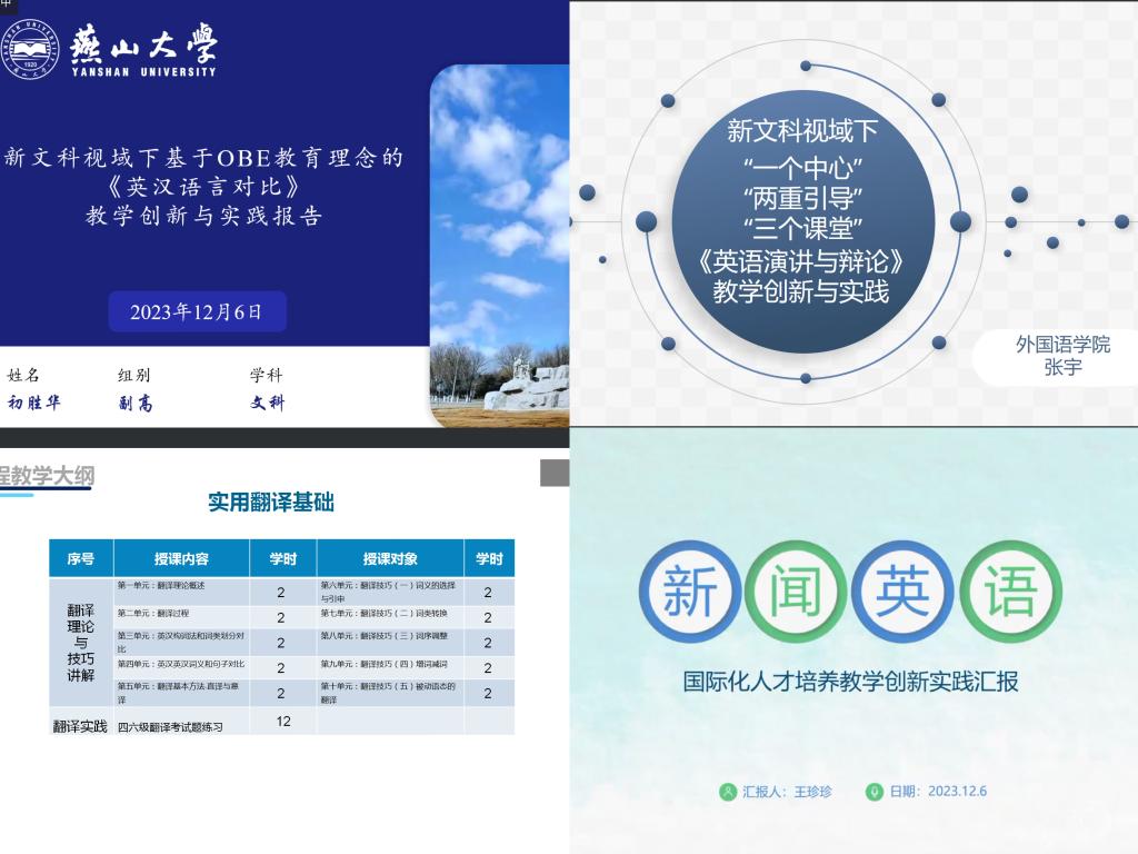 四位参赛教师均结合教学大纲与教学实践,进行了教学设计创新汇报,各位评委根据选手汇报情况进行提问和交流。