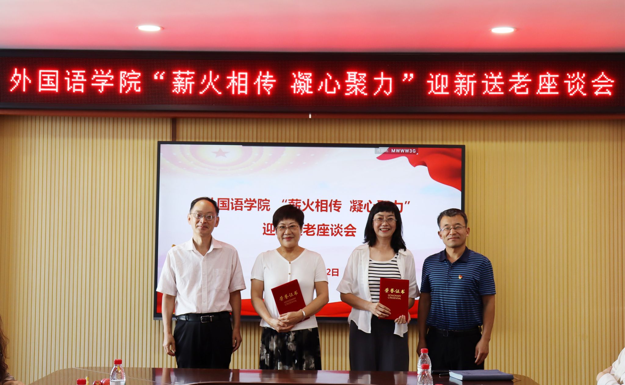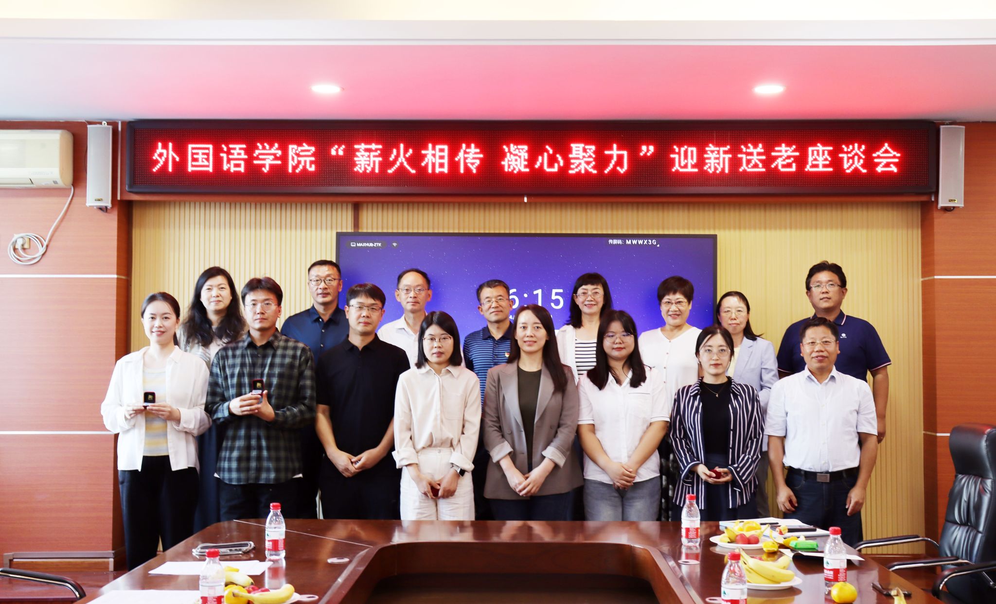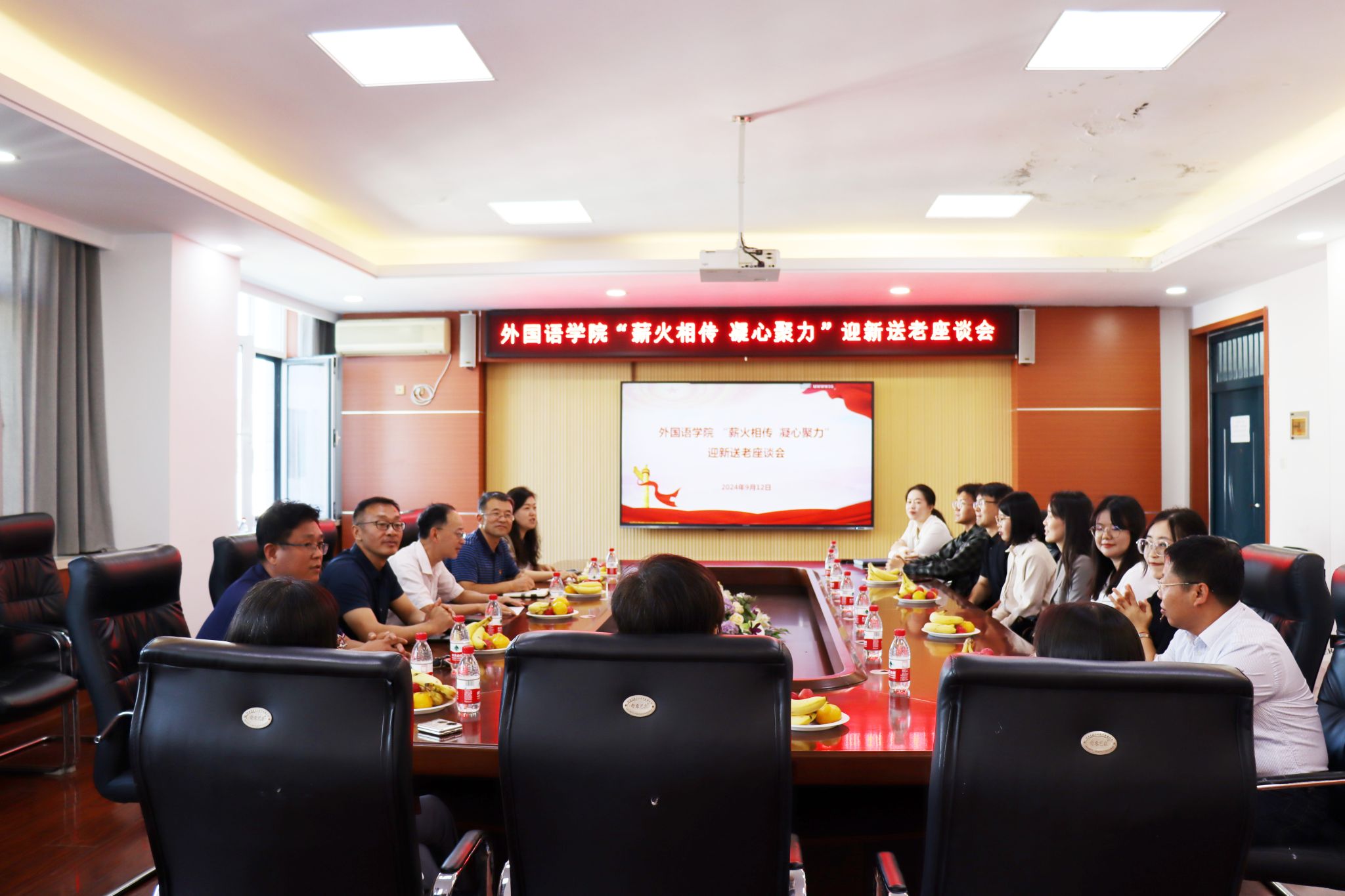 9月12日下午,外国语学院在人文馆417举办了“薪火相传 凝心聚力”迎新送老座谈会。学院领导班子成员、退休教师、从教30年教师代表、2024年新入职教师参加。活动由外国语学院党委副书记夏亮亮主持。