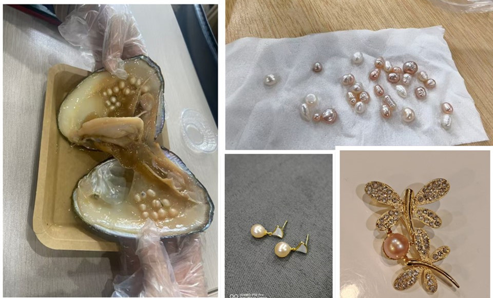 现场布置得温馨而雅致,学院特意邀请了专业老师来指导大家进行开蚌和珍珠饰品制作。开蚌的过程充满了未知与惊喜,每个人打开的蚌里都有着大小不一、颜色各异的珍珠。有的珍珠圆润光滑,光泽耀眼;有的则形状奇特,别有一番风味。大家在开蚌的过程中,不时发出阵阵惊叹和欢笑声,气氛热烈而愉悦。
