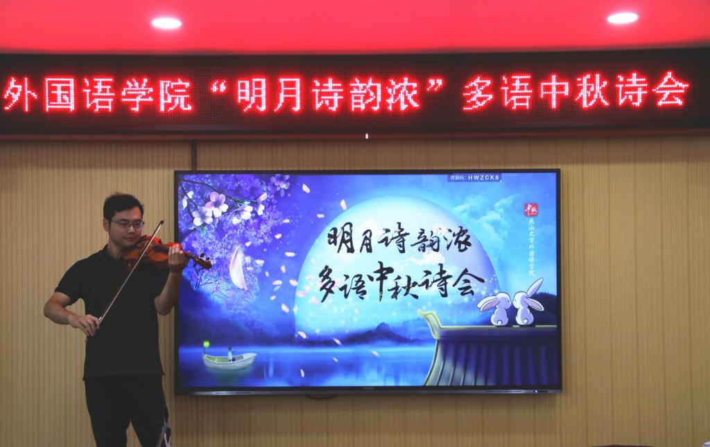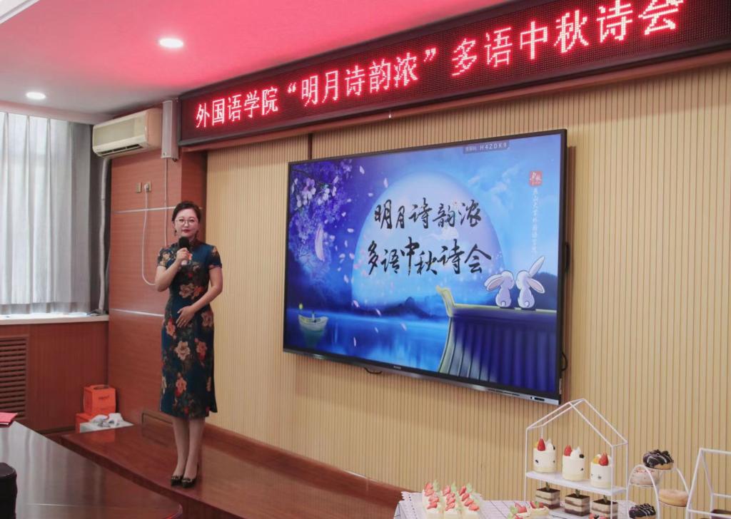 临近中秋佳节,为了更好弘扬优秀传统文化,9月8日下午,外国语学院工会在人文馆417举办了“明月诗韵浓”多语中秋诗会,融合了朗诵、乐器演奏、诗歌填词等多种节目形式,营造了传统节日喜庆祥和的氛围和高洁雅致的格调。活动由综合办公室杨洋主持。