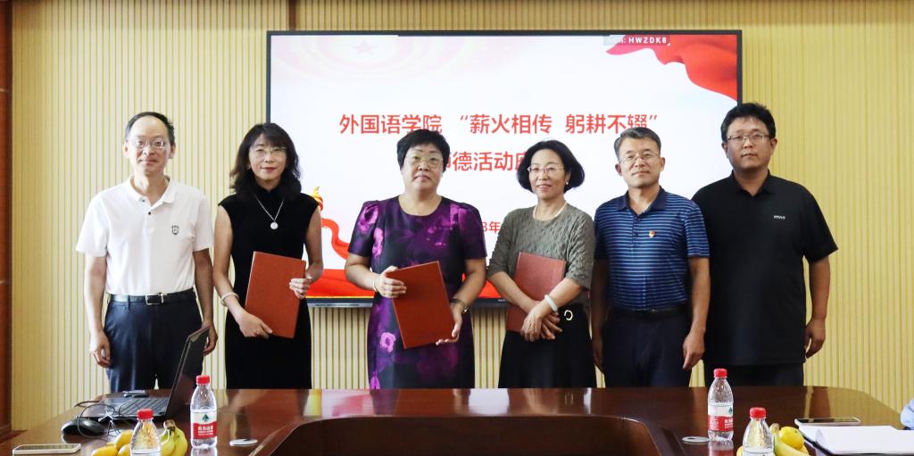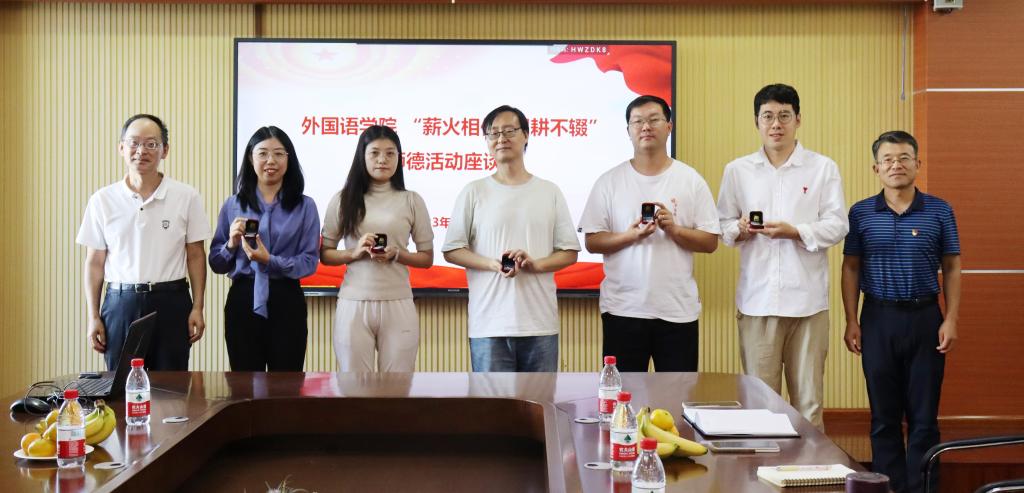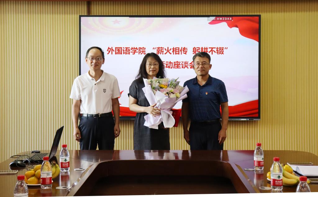 9月22日下午,外国语学院在人文馆417举办了“薪火相传 躬耕不辍”师德交流分享座谈会。学院领导班子成员、今年退休教师、从教30年教师代表、2023年新入职教师参加。座谈会由学院党委副书记夏亮亮主持。