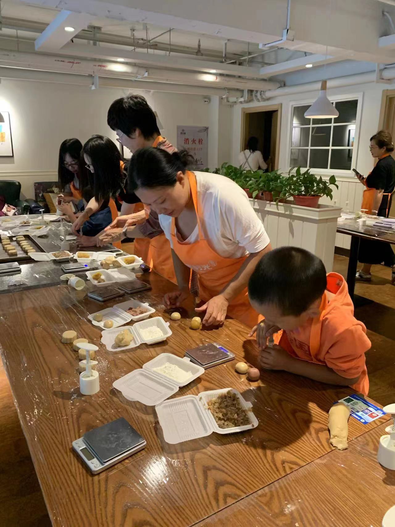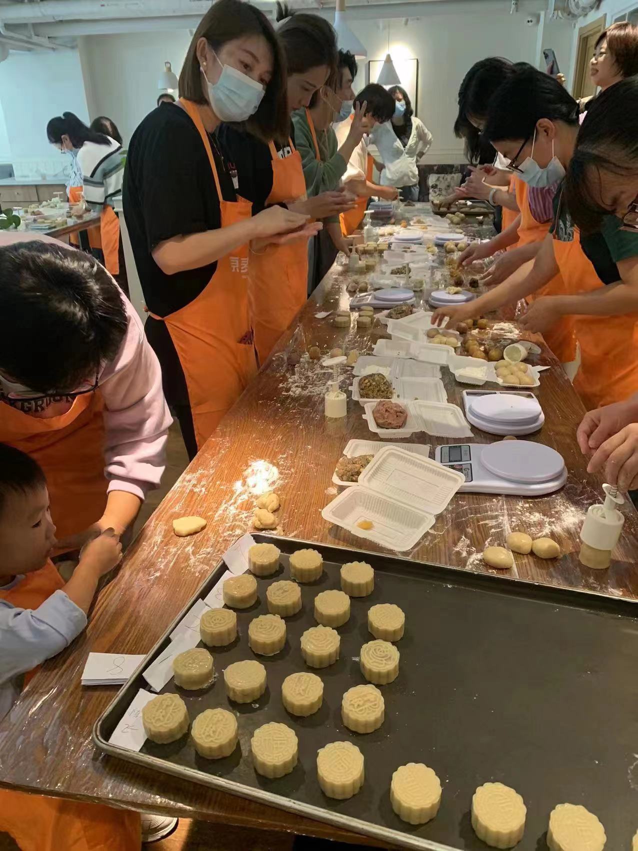 活动在白塔路西元素店举行,分上午和下午两个场次,60余名教师参与了此次活动。活动伊始,在糕点老师的带领下,老师们了解了制作月饼的步骤,掌握了制作月饼的操作流程,大家开始自己动手亲自制作月饼。有的揉面团、擀面皮,有的包馅料、定型,老师们忙的不亦乐乎,体验制作的乐趣。