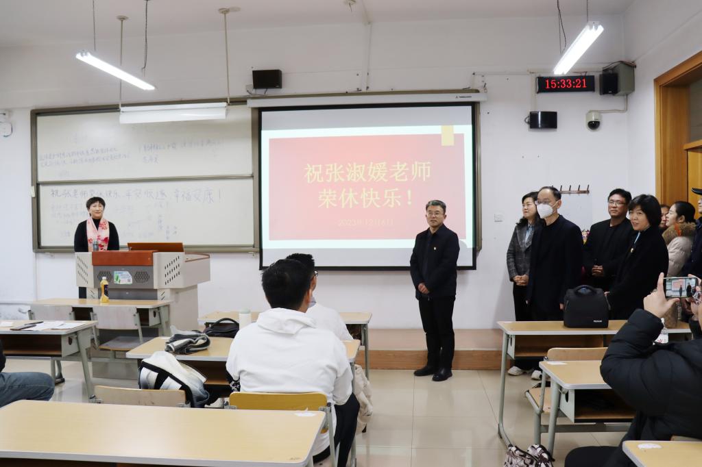 老教师是学院的宝贵财富,是年轻教师奋发向上的精神动力,外国语学院研究生英语系张淑媛老师将于12月退休,12月6日下午7-8节课是张老师退休前的最后一次课,外国语学院工会举办了“流金岁月感恩有你——退休教师‘最后一堂课’”荣休仪式活动。