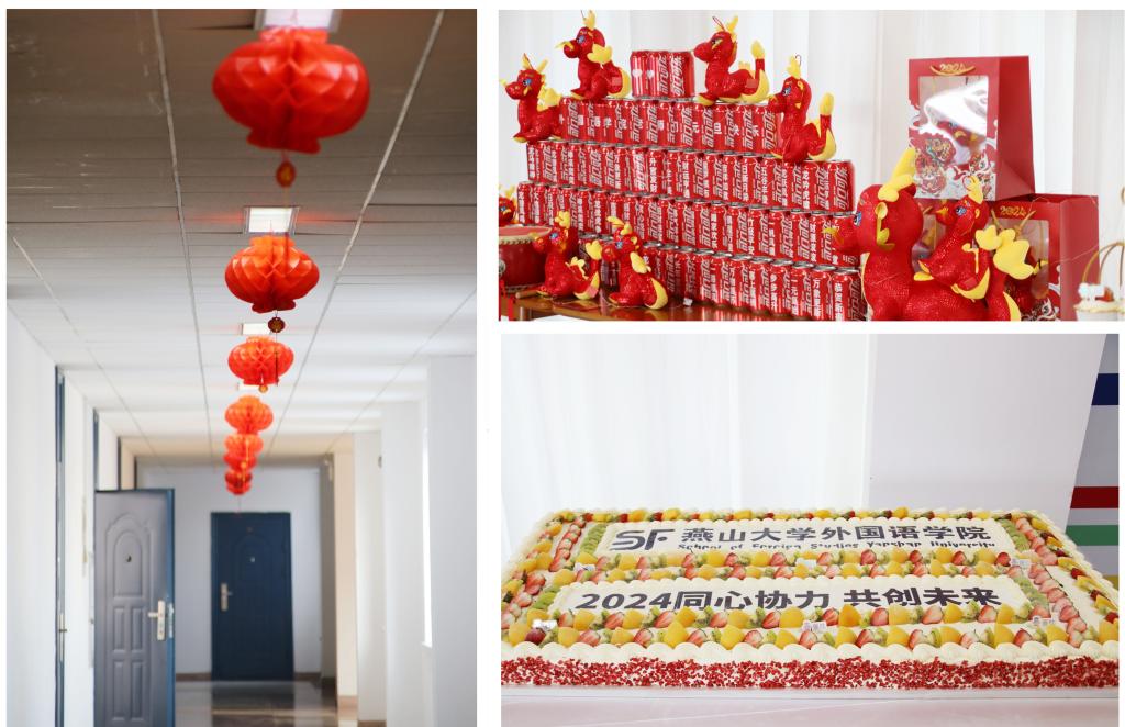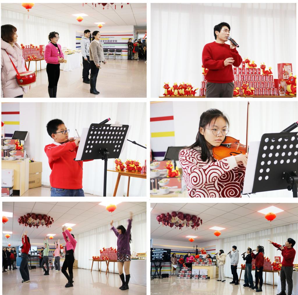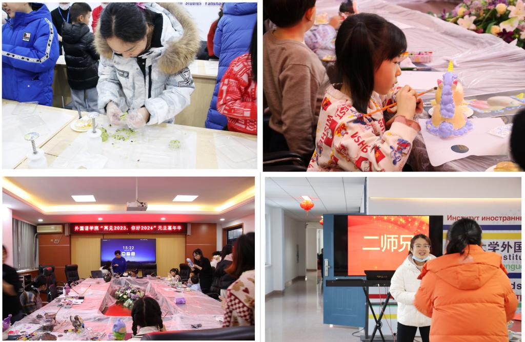 龙的传人过龙年,龙凤呈现庆团圆。为营造欢乐喜庆、祥和文明、温馨和谐的节日氛围,2023年12月29日下午外国语学院工会在人文馆四楼举办了“再见2023,你好2024”元旦嘉年华活动。会场气氛温馨而热烈,洋溢着节日的喜气和欢快。
