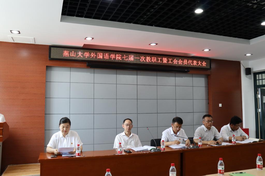 5月30日下午,外国语学院七届一次教职工暨工会会员代表大会在人文馆416报告厅隆重召开,51名代表齐聚一堂,共谋学院建设与发展。