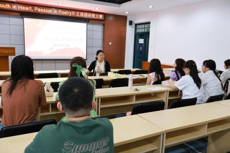 为营造更丰富的学习氛围,提升外国语学院学子的创新精神,同时加强校园文化建设,6月9日下午18:00,乌鸦传媒外国语学院研究生会在人文馆416举办“Youth in Heart, Passion in Poetry” 外文原创诗歌大赛。本次大赛旨在激励同学们以诗歌为载体,抒发青春的激情与热血,用韵律传递内心的昂扬斗志。此前,参赛同学均已在线上提交中英文原创诗歌稿件,在此,同学们携带原创稿件进行线下诗歌朗诵比赛。本次比赛共有十余名同学参加,由李继燕老师担任评委。