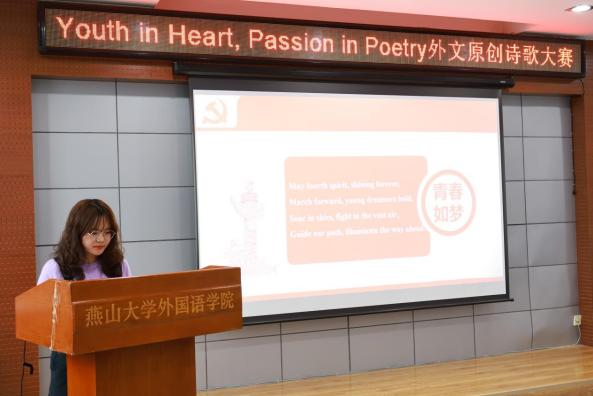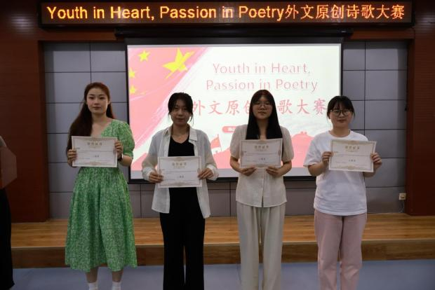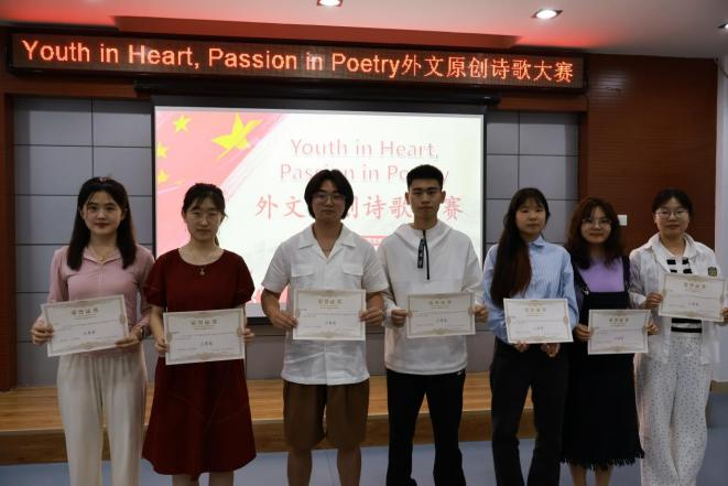 比赛过程中,选手们不仅通过精湛的英文诗歌朗诵,展现了五四精神的热血与激情,更凸显了当代青年的风采与活力。他们的原创诗歌意境深远,富有力量,朗诵时声音铿锵有力,字字句句都透露出坚定的决心与昂扬的激情。经过激烈的角逐,最终选出2名一等奖,4名二等奖,7名三等奖。