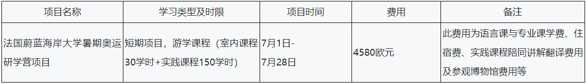 3.法国蔚蓝海岸大学暑期奥运研学营项目简介详见附件1。