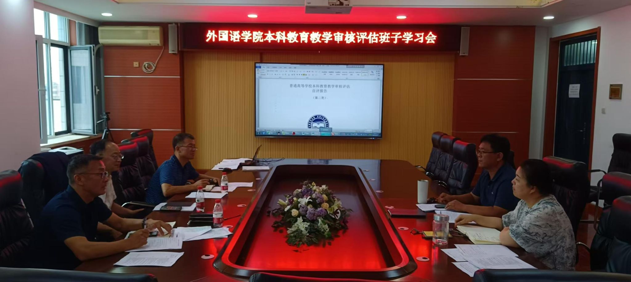 为进一步提升外国语学院的教育教学质量,确保顺利通过本科教育教学审核评估,外国语学院于2024年9月9日在人文馆417召开了学校自评报告领导班子学习会,深入学习评估政策,了解学校自评情况,为评估工作做好充分准备。