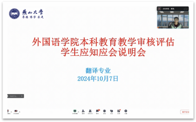 侯老师最后强调,我校本科教育教学审核评估工作即将启动,希望各位同学能以饱满的热情参与到本科教育教学迎评工作中来,以最佳状态展示外国语学院翻译专业学生的精神风貌和风采。